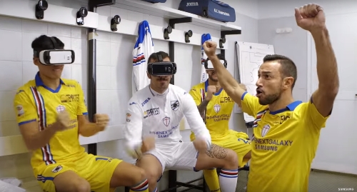 Allo stadio Giuseppe Meazza di Milano, sabato 20 febbraio, durante la partita Inter-Sampdoria, i giocatori blucerchiati sono scesi in campo indossando il device di realtà aumentata Samsung Gear VR.