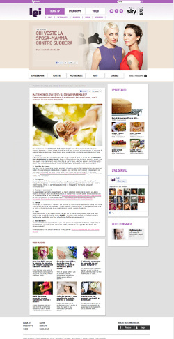 La sezione “Programmi”, per esempio, contiene l’intero mondo di LeiTv dove gli utenti trovano tutte le notizie relative ai format di punta del canale, contenuti extra, interviste esclusive e filmati inediti. Un vero e proprio blog verticale che si arricchisce di nuove informazioni su ciò che si è visto in puntata. Dalle interviste esclusive di “Chi veste la sposa - Mamma contro Suocera”, alle ricette