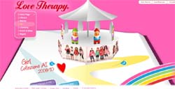 Online, sul sito www.lovetherapy.it realizzato dall'agenzia, attraverso la metafora di un libro pop-up, i visitatori scoprono la filosofia di Love Therapy e la storia del suo ideatore Elio Fiorucci, le nuove collezioni AI2009 Woman e Girl, i progetti di licensing con altri prestigiosi marchi, una sezione eventi e news per essere sempre informati sulle ultime novità. Sono presenti inoltre due aree tematiche e riservate per giornalisti e agenti.