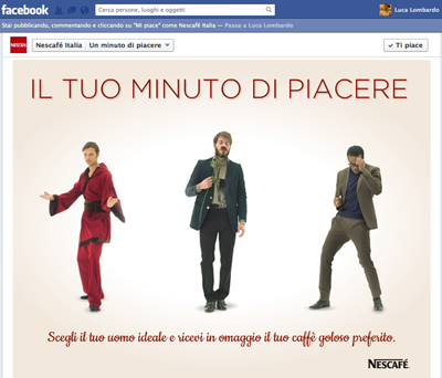 Un minuto di pausa può diventare un minuto di piacere. Con questo concept Nescafé ha scelto di lanciare la gamma dei caffè golosi nel mondo digital. La campagna, rivolta perlopiù al pubblico femminile, punta sull’ironia e sul gioco della seduzione. E lo fa con una Facebook App interattiva e con tre personaggi molto singolari che seducono, divertono e incarnano, ciascuno a modo suo, la personalità di un caffè goloso.