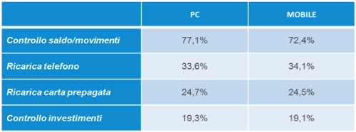 Il mobile viene utilizzato dai due terzi dei clienti per verificare saldo e movimenti e con regolarità per effettuare ricariche telefoniche o di carte prepagate.