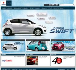 Il nuovo sito Suzuki, www.suzuki.it, si rinnova nella grafica e nei contenuto tecnologici, presentando una struttura semplice e intuitiva, organizzata in tre minisiti tematici dedicati alla moto, all'auto e ai fuoribordo.L'utente viene coinvolto, sin dalla home page tematica, con immagini emozionali e accompagnato nella scelta del modello preferito. Le pagine modello, ricche di immagini e di schede informative, soddisfano l'utente e lo invogliano a selezionare immediatamente uno dei concessionari Suzuki attraverso lo store locator su google maps per prenotare il test drive. Inoltre, è presente un selettore degli accessori disponibili per il suo modello.