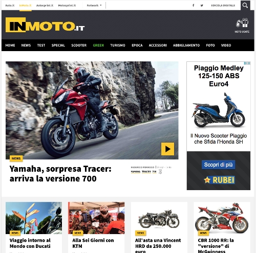 In evidenza anche le aree Epoca, Turismo, Abbigliamento e Accessori per inMoto.it e Green, Hi Tech e Tuning per Auto.it. Tutte le novità del mercato vengono presentate con Articoli, Foto, Video e Interviste in anteprima nelle rispettive sezione Saloni. Innovazione e tecnologia mescolati all'autorevolezza e all'esperienza di inMoto e Auto i mensili di