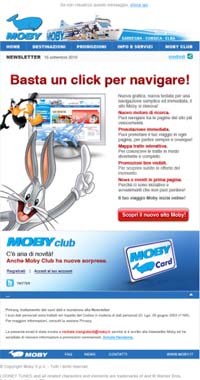 La compagnia dei traghetti Moby ha deciso di regalare un nuovo look al proprio sito (www.moby.it) per facilitarne l’utilizzo attraverso un layout e una struttura più semplice, ma anche più accattivante. La grafica è dominata dal blu, il colore della balena, il famoso logo di Moby. "Volevamo rendere più intuitivo l’accesso e l’utilizzo - spiega Michele Mangiatordi, direttore e-commerce di Moby - Per questo è stato semplificato il percorso di navigazione e l’accesso alla prenotazione. Il sito deve essere prima di tutto uno strumento al servizio del cliente e quindi abbiamo messo in evidenza gli strumenti e le informazioni pratiche, a cominciare dal form di prenotazione, che ora è presente in tutte le pagine".