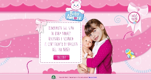 Per Giochi Preziosi On realizza un minisito dove le piccole neoproprietarie di Baby Amore possono registrare il certificato di nascita del loro bebè. La compilazione è semplice e guidata e permette di scaricare e stampare il certificato di nascita personalizzato di Baby Amore.
