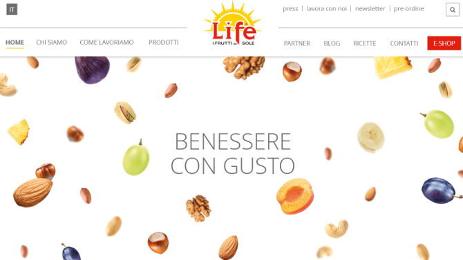 È online il nuovo sito di Life, azienda attiva nel settore frutta secca, essiccata e disidrata. Il nuovo portale www.lifeitalia.com prevede sezioni che rimandano a contenuti aggiornati in tempo reale e di semplice fruizione per l’utente, con una divisione lineare delle diverse tipologie di prodotto.