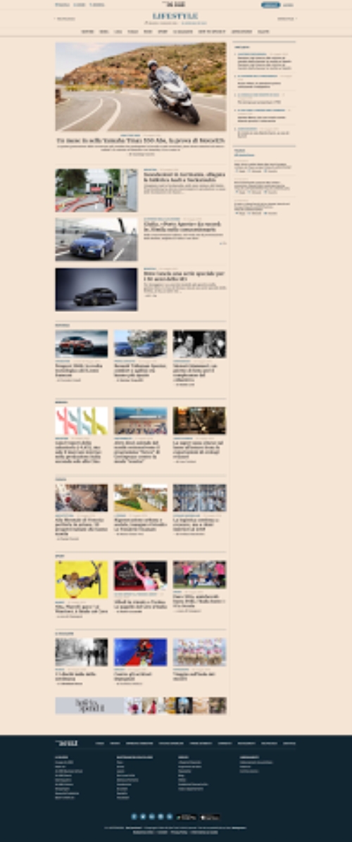 LIFESTYLE, che raccoglie in unico contenitore il meglio delle notizie e degli approfondimenti sui piaceri della vita e gli interessi personali, a partire dai motori al tempo libero, dal fashion ai viaggi, dall’enogastronomia alla casa fino alla salute, aggregando in unico punto d’accesso i canali Motori24, Moda24, Casa24, Viaggi24, Food24, ArtEconomy24, Salute24, lo sport e i magazine IL e How To Spend It.
