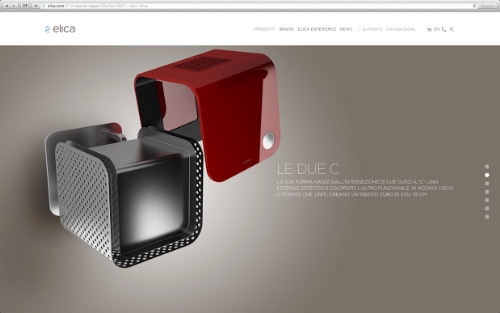 Sin dalla Home page si mette in risalto quell’intreccio di tecnologia e design che caratterizza il brand Elica. E lo si fa con delle vere e proprie campagne di comunicazione basate sul concept della leggerezza. Rapido accesso poi ai prodotti, la cui presentazione risponde alla vocazione di Elica di fare "cultura di prodotto" relativamente ad un prodotto forse ancora poco "esplorato" dai consumatori.