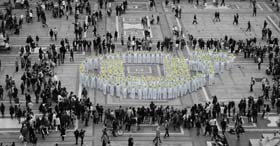 Nel pomeriggio operatori-mobbers sono giunti in Piazza Duomo da 8 direttrici per dare vita uno spettacolare flash-mob, che ha riprodotto per alcuni minuti la scritta Cubeyou in versione big.