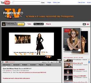 Pambianco Tv, la webTv del gruppo Pambianco lanciata il 10 ottobre del 2008, è oggi presente su YouTube con un canale dedicato. Una selezione dei più interessanti filmati proposti dalla webTv di Pambianco è messa a disposizione di tutti i fruitori di YouTube che, con un semplice click, potranno poi proseguire nella scoperta dei contenuti video proposti da Pambianco Tv grazie al link diretto che da YouTube rimanda al sito della webtv.