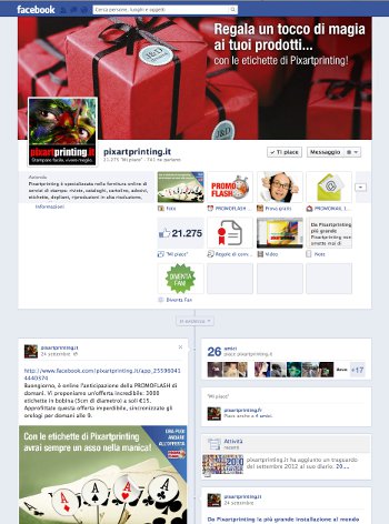 Il 28 settembre Pixartprinting ha festeggiato il primo anno di presenza sul più famoso dei social network, Facebook. E nonostante l’iniziale scetticismo del presidente - Matteo Rigamonti - il progetto ha riscosso grandi consensi, superando di gran lunga le aspettative. La pagina italiana facebook.com/pixartprinting.it, infatti, conta ad oggi oltre 20.000 “mi piace” e ha contribuito anche a portare nuovo traffico sul sito. Un risultato ben superiore alle previsioni dell’azienda, soprattutto se si considera che Pixartprinting si rivolge a un target professionale.