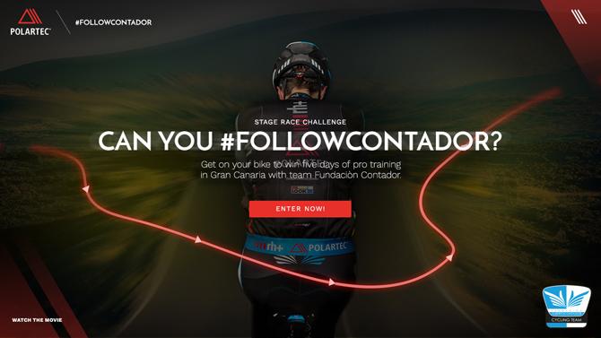 Con l’obiettivo di aumentare l’awareness e la credibilità del brand Polartec nel settore del ciclismo, il progetto #followContador si rivolge in particolare agli amanti del ciclismo (18-45 anni) che seguono lo sport e si allenano regolarmente. A loro Polartec, attraverso un concorso online integrato con i principali social network, offre la possibilità di vincere un training camp professionale di 5 giorni a Gran Canaria al fianco del campione iberico Alberto Contador e del giovane team della sua Fondazione.
