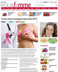 Pourfemme sostiene il mese della lotta contro il cancro al seno con un logo dedicato e la sezione 'Ottobre è prevenzione'. Il nastro rosa simbolo dell’omonima campagna per la prevenzione del cancro al seno entra per tutto il mese di ottobre nel logo di Pourfemme, punta di diamante del Circuito Donna di tg|adv. Il magazine supporterà la campagna per la salute delle donne anche con post social dedicati sulla sua pagina Facebook, frequentata da 192.000 fan.