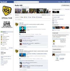 La pagina ufficiale di Radio 105 su Facebook sta registrato un crescita ininterrotta, passando dai 293.767 like di luglio 2010 ai 600.000 odierni, con una crescita media giornaliera di circa 1000 nuovi utenti.Il profilo è stato lanciato dall’Area Digital Media del Gruppo Finelco nel 2008, nel contesto di una strategia di Social Media Marketing che vede le emittenti del gruppo presenti anche su Twitter, YouTube e Foursquare in maniera capillare e organica.