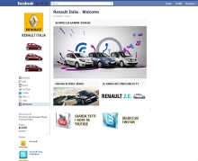 Raggiungibile all’indirizzo www.facebook.com/renaultitalia, la pagina di Renault Italia presenta un’interfaccia grafica semplice ed intuitiva, dove l’utente può trovare immediatamente, nello spazio centrale, una sezione dedicata alle News di Renault. Molte inoltre, le sezioni interattive presenti all’interno della Like Page, che permettono di scoprire i messaggi Renault su Twitter, o i video su YouTube: un vero e proprio spazio virtuale in cui gli universi dei moderni social network interagiscono fra loro nel comune intento di rendere l’utente protagonista e di coinvolgerlo con le molteplici iniziative proposte da Renault Italia.