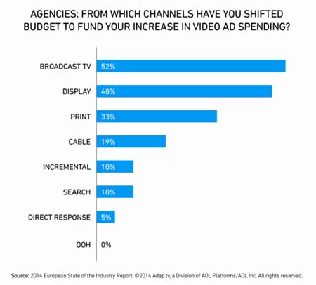 o la maggior parte delle agenzie pubblicitarie sta intaccando i propri budget TV per sostenere le campagne video online. Questa tendenza è cresciuta fino al 29% rispetto all’anno precedente