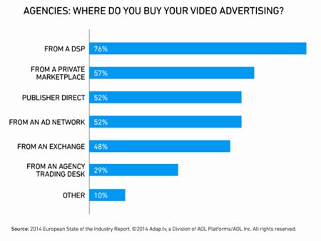 o Le DSP potrebbero dominare (il 76% delle agenzie compra da DSP) ma i private marketplace stanno crescendo: il 57% delle agenzie intervistate acquista video in questo tipo di ambiente.
