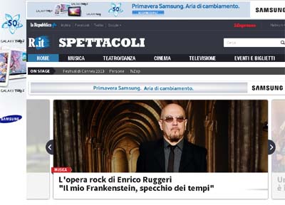 E' online da ieri il nuovo canale dedicato al mondo degli spettacoli su Repubblica.it. Un luogo dove scoprire tendenze, approfondire, trovare contenuti selezionati dalla musica alla televisione, dal cinema al teatro, dalle notizie sui personaggi più in vista ai grandi tour del momento.