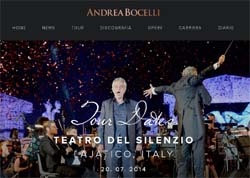 Dal 1 agosto il sito ufficiale di Andrea Bocelli ha una nuova veste grafica e strutturale. Grazie al restyling totale, dopo mesi intensi di lavorazione ad opera dello Studio Scozzese, il portale www.andreabocelli.com è ora fruibile da qualsiasi dispositivo mobile (smartphone e tablet) e consente una maggiore velocità di navigazione. Una vera necessità ormai per i tanti fan dell'artista, sparsi in tutto il mondo, che si tengono costantemente aggiornati online sulle sue attività. Contatti ricorrenti arrivano infatti da ogni continente, con tantissimi collegamenti in particolare dagli USA, dal Regno Unito e dal Brasile.