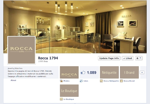 L'azienda distributrice di orologi e gioielli di alta gamma, ampliando il progetto di comunicazione integrata iniziato due anni fa con il restyling del sito www.rocca1794.com, debutta sul social network con una pagina interattiva che ospita immagini storiche, approfondimenti, news e suggestioni.