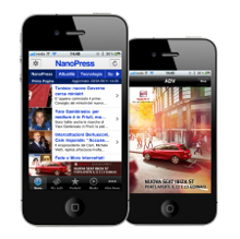 Gli m-site del brand NanoPress rientrano nell’offerta mobile che tg|adv è in grado di offrire ai propri clienti per una pianificazione advertising. Il lettore ha così a disposizione le principali news che circolano sul web, contenuti incentrati sulla multimedialità con foto e video e una fruibilità semplice grazie al tab “categorie” che permette di orientarsi al meglio cercando esattamente il proprio argomento di interesse. Su tutti gli m-site, come sulle ormai numerose applicazioni iPhone che tg|adv mette a disposizione, è possibile utilizzare oltre a formati statici e creatività interattive, anche video, come dimostra la pianificazione realizzata per Seat, prima campagna realizzata con formati video su mobile dalla concessionaria.