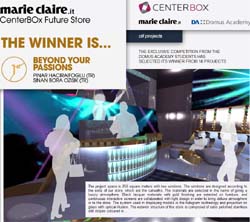 Il concorso ideato da Marieclaire.it insieme a CenterBox by Centregross e Domus Academy e da poco conclusosi era rivolto agli studenti e agli ex studenti dei corsi postlaurea della design e fashion school milanese e ha visto giovani creativi in gara per elaborare il concept innovativo per lo store o il corner di abbigliamento del futuro. Il sito dedicato è firmato dodicitrenta.