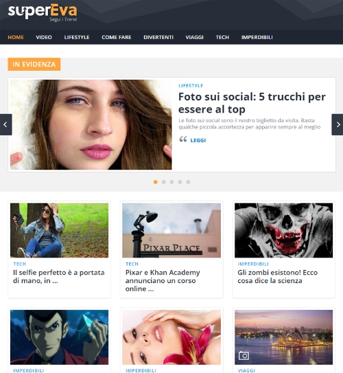 Il nuovo superEva è un sito di informazione leggera e di intrattenimento, quello che Oltreoceano viene definito un lifestyle destination site, ovvero un punto di raccolta di contenuti stimolanti, divertenti, feel-good. Una dashboard evidenzia gli argomenti più cercati e discussi del momento, in base ad algoritmi che seguono il trend di crescita, di diffusione e di condivisione, analizzando il flusso delle informazioni sui principali social network e motori di ricerca.