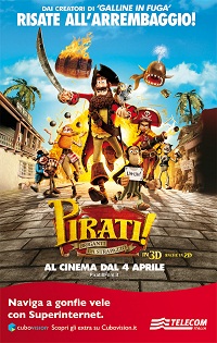 Immersioni nelle bellissime acque dell’isola d’Elba, rafting in Piemonte, battaglie laser nei parchi lombardi, provare il brivido della velocità su una Ferrari…Queste sono alcune delle possibili esperienze che si possono vivere giocando con 'Pirati! Briganti da strapazzo', il nuovo film di animazione distribuito dalla Warner Bros. Pictures e al cinema dal 4 aprile. Telecom Italia, in collaborazione con ArmosiA, infatti, lancia il contest 'Gioca e vinci con 'Pirati! Briganti da strapazzo' sulla pagina ufficiale Facebook di Tim che
