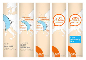La campagna prende il nome dall’area socio-geografica europea nota come "Blue Banana", caratterizzata da una concentrazione di popolazione ed industrie tra le più alte al mondo composta da Italia, Austria, Francia, Germania, Gran Bretagna, Benelux e Svizzera. Ai clienti che attivano nuove direttrici in export in uno dei Paesi “Blue Banana” viene offerto uno sconto del 20%. L’obiettivo è di supportare la crescita delle PMI in quell'area. L'agenzia di OMG ha previsto una pianificazione esclusivamente online, declinata in display e video.
