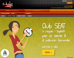 La Seat (Casa automobilistica spagnola appartenente al Gruppo Volkswagen) Gold Sponsor dei Campionati A1 e A2, e Main e Title Sponsor degli Eventi della Lega Pallavolo Serie A Femminile, consolida il proprio impegno con il mondo dello sport grazie al concorso Volley Bag, con il quale mette in palio i biglietti per assistere agli incontri della Pallavolo Femminile di Serie A.Il gioco online, attivo fino al 24 marzo 2010 e raggiungibile all’indirizzo www.clubseat.it, è stato studiato dall’agenzia veronese Upgrade Multimediale, che ha ideato e sviluppato il game la cui protagonista è Penelope, giovane giocatrice di pallavolo. Lo scopo è aiutare Penelope a preparare il borsone per la partita con tutto l’occorrente per non arrivare in campo impreparata e, nello stesso tempo, partecipare all’estrazione dei biglietti per i match del Volley rosa.
