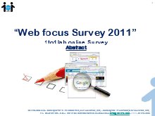 La ricerca “Web focus Survey 2011” ha colto le riflessioni di un campione di opinion leader del mondo del marketing e della comunicazione sull’utilizzo del web in Italia e sulle strategie di presenza online delle aziende italiane. (In allegato un abstract del sondaggio)