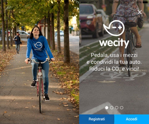 È 'Wecity', la prima app gratuita per iPhone, Android e Windows phone in grado di calcolare quante emissioni di CO2 produciamo quotidianamente e che promuove ogni tipo di spostamento urbano a basso impatto ambientale, attraverso un gioco e dei premi.