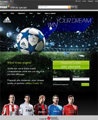 adidas e Microsoft Advertising hanno unito le forze per promuovere online il nuovo concorso a premi di adidas a tema UEFA Champions League dedicato agli appassionati dello sport più popolare nel mondo. Obiettivo finale della campagna, oltre a fidelizzare il cliente e promuovere la visita degli store adidas, è stato di fare interagire gli utenti con il brand adidas, integrando comunicazione offline e online attraverso strategie tese a legare il marchio tedesco alla realizzazione dei sogni dei tifosi di calcio, mettendo in palio la possibilità di gustarsi dal vivo direttamente allo stadio alcune partite della Champions League.Online dall’8 al 26 ottobre, la campagna di comunicazione ha visto la creazione di un minisito adidas su MSN (all’indirizzo http://adidasucl.msn.it/) pensato ad hoc per l’occasione e studiato in modo da essere accattivante soprattutto per il core target dell’offerta, ovvero i ragazzi tra i 10 ed i 24 anni.