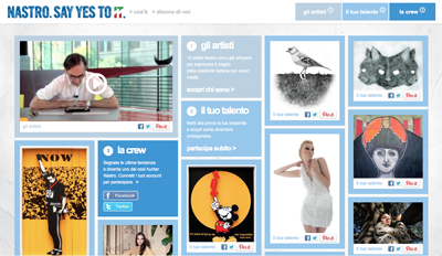 Inoltre, volendo coinvolgere attivamente anche coloro che hanno una sensibilità artistica, ma artisti non sono, sarà presente una sezione chiamata “crew” dove gli utenti caricando immagini riguardanti moda, urban art e design si trasformeranno in cool hunter Nastro.