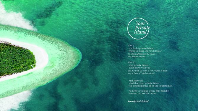 Il visual, caratterizzato da immagini evocative, punta su una natura accogliente da vivere in modo immersivo, tra relax e convivialità. Completa il progetto un ambiente digitale dedicato all’approfondimento di questi valori e delle esperienze uniche vivibili a bordo di un’imbarcazione (yourprivateisland.com).