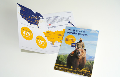 Zero - starting ideas firma la nuova iniziativa Lufthansa per promuovere le tratte e le tariffe speciali per Nord America e Asia, e per comunicare un codice promozionale che dà diritto a uno sconto sul biglietto aereo.