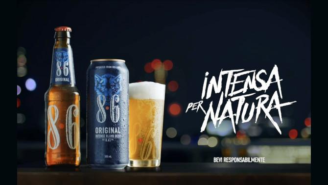 Protagonista dello spot, 8.6 Original: una birra doppio malto ad alta gradazione, forte e decisa, contraddistinta da note fruttate e maltate, prodotta con ingredienti selezionati e con l’orzo migliore. Il processo di fermentazione esclusivo che la caratterizza esalta al massimo il suo gusto unico e la sua personalità.