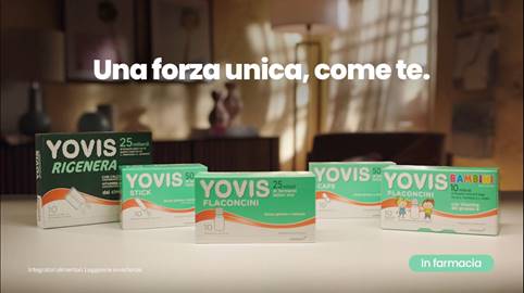Lo fa attraverso prodotti specifici, in grado di rispettare in grado di rispettare e adattarsi alla varietà interindividuale del microbiota, che rende che rendono unico ognuno di noi: Flaconcini a Yovis Caps e Yovis Stick, oltre a Yovis Bambini, dedicato ai più piccoli, e il nuovo Yovis Rigenera per persone dai 50 anni in su.
