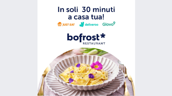 Non poteva mancare nei nuovi Eat & Shop l'acquisto take away, con consegna garantita in soli 30 minuti, attraverso le piattaforme di delivery Deliveroo, Just Eat e Glovo, dove i bofrost* Eat & Shop sono presenti con la loro offerta dedicata ai piatti pronti da gustare subito. Tutto questo, si unisce alla possibilità di selezionare nel take away anche le specialità alimentari del noto catalogo bofrost*, in costante aggiornamento e ampliamento di un’offerta culinaria unica e di grande qualità.