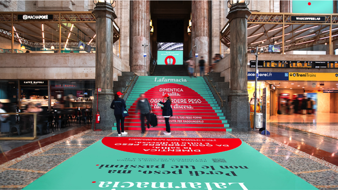 La campagna di comunicazione omnichannel è stata protagonista di una domination studiata ad hoc per la Stazione Centrale di Milano, una location strategica ad alto flusso di traffico. L’utilizzo dei caratteristici maxi ledwall e del circuito di schermi digitali presenti in stazione e la realizzazione di un’impattate personalizzazione della scalinata centrale hanno permesso di massimizzare la visibilità del messaggio, e raggiungere un pubblico molto ampio.