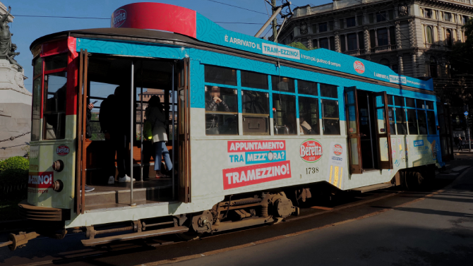 Due le città presidiate, Torino e Milano, con la presenza sui grandi schermi delle due stazioni principali, il full wrap per un mese del Tram storico a Torino e del Tram Darsena Milano e la brandizzazione di un pensilina doppia in zona Cairoli a Milano, dove in occasione del Tramezzino Day in programma sabato 11 maggio ci sarà un’attività di sampling.