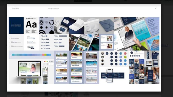 Il brand scompone tutti gli elementi visivi del Politecnico stesso, e li declina in tutte le sue versioni: dal marchio, al tone of voice, dalla palette colori alla tipografia e al naming delle strutture, dalla brand architecture al linguaggio fotografico fino alla rappresentazione di tutti i format analogici e digitali per tutte le applicazioni possibili.