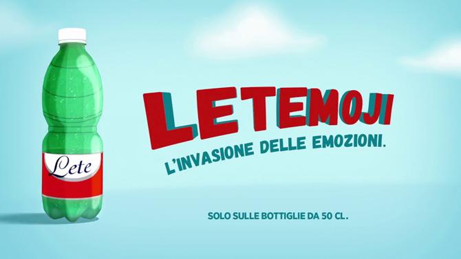 La campagna pubblicitaria è stata ideata dall'agenzia Mosquito di Roma. Lo spot televisivo, anticipato da un teaser radiofonico, vede protagoniste le bottiglie Lete da 50 cl. che si lanciano da un aereo come provette paracadutiste per atterrare nei luoghi simbolo della nostra quotidianità. La pacifica e gioiosa invasione delle bottiglie Lete nelle scuole, palestre, bar e uffici è scandita dal ritmo de La Cavalcata delle Valchirie di Wagner, con decine di Letemoji pronte a farsi portavoce delle emozioni di tutti gli Italiani. La casa di produzione è la Frame by Frame, la tecnica utilizzata è mista: 2D per ambientazione e 3D per l'animazione.