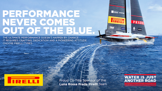 M&C Saatchi, in occasione della Louis Vuitton Cup 2024, competizione che vale l’accesso alla 37esima America’s Cup, ha realizzato per Pirelli la campagna “Performance never comes out of the blue”, associata all’immagine di Luna Rossa che fende l’acqua lasciando dietro di sé l’impronta del battistrada del pneumatico Pirelli P Zero. L’obiettivo era quello di creare un parallelismo visivo tra il mondo della vela e quello dell’automotive per dimostrare come l’eccellenza nelle prestazioni sia frutto di un lungo percorso di sviluppo tecnico e ingegneristico, sulla strada come in mare.