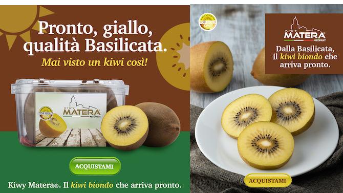 Giunto sugli scaffali della GDO e sui banchi dei mercati ortofrutticoli, il frutto è pronto a conquistare il palato dei consumatori già al perfetto grado di maturazione: le raccolte, infatti, oltre che in maniera attenta e nel rispetto dell’ambiente, avvengono solo quando i kiwi sono pronti da gustare e ricchi delle sostanze che assicurano la loro perfetta durata in ambiente dolcemente refrigerato, mai congelato. Da qui l'idea del claim della campagna "Dalla Basilicata, il kiwi biondo che arriva pronto", che esalta la particolare varietà gialla e trasmette immediatamente al consumatore l'idea di poter mangiare il kiwi in tempi brevi.