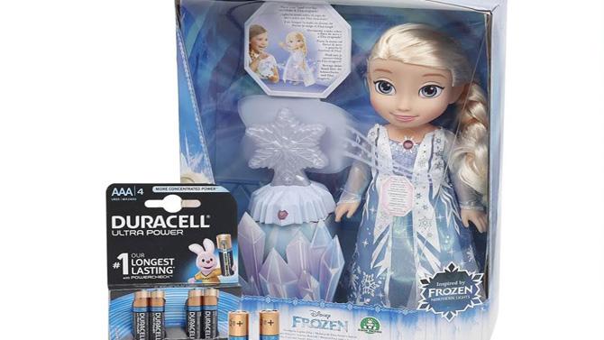 La collaborazione tra le due aziende nasce in relazione ai giocattoli legati al mondo di “Frozen” della Disney come per esempio Elsa Luci del Nord con Canzone di Giochi Preziosi. Si tratta di giocattoli tecnologici di ultima generazione che hanno bisogno delle batterie a lunga durata Duracell.