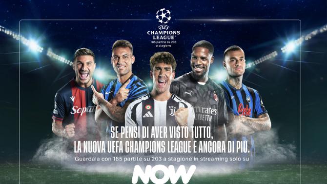 Se pensi di aver visto tutto, la nuova UEFA Champions League è ancora di più. È il claim della nuova campagna di NOW dedicata alla regina delle competizioni europee, la UEFA Champions League. Da oggi online sulle principali piattaforme digitali, la campagna - ideata e realizzata dalla Sky Creative Agency - parte proprio nel giorno in cui ha inizio su Sky e in streaming su NOW l’avventura della massima competizione continentale con il nuovo format: un totale di 185 partite in esclusiva su 203 a stagione, inclusi i preliminari dei playoff di agosto. Notti epiche, giocate iconiche e chi, la storia, la vuole scrivere: la campagna mette in scena tutto questo, in un ideale percorso che dai momenti leggendari del passato arriva fino alla grande stagione europea che sta per iniziare. Dalla prima rete nella competizione di Del Piero, che avviò il cammino dei bianconeri fino alla trionfale finale di Roma, all’iconica volée di Zidane che consegnò al Real Madrid la coppa nel 2002, fino ad arrivare ai gol di Inzaghi e Milito, perle decisive per la conquista del titolo di Milan e Inter. La storia scritta lascia il posto alla storia da scrivere, con gli eroi di oggi pronti a prendersi la scena nel torneo a girone unico, con 5 squadre italiane impegnate per la prima volta in UEFA Champions League, rappresentate nella campagna da protagonisti d’eccezione: Lautaro Martinez (attaccante, capitano dell'Inter e capocannoniere della scorsa stagione di Serie A), Mike Maignan (portiere del Milan), Dusan Vlahovic (attaccante della Juventus), Riccardo Orsolini (attaccante del Bologna) e Gianluca Scamacca (attaccante dell'Atalanta), un parterre de rois a cui si aggiunge anche Paulo Dybala, condottiero della Roma alla conquista della UEFA Europa League.