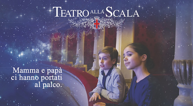 La campagna si articola su quattro soggetti per stampa, affissione e web: uno istituzionale dedicato al pubblico degli abbonati; uno per promuovere gli spettacoli riservati agli under 30; un soggetto per i “Grandi spettacoli per i piccoli”, allestimenti speciali che ormai da anni La Scala organizza per i bambini.