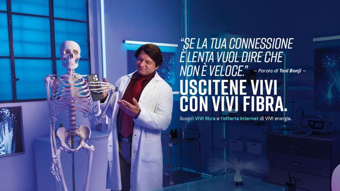 La campagna prevede due spot di tagli diversi - 15, 20, 30” - in cui il comico Toni Bonji, nella veste di “Dottor Della Monaca” - colui che ha sempre la risposta giusta - indica la soluzione ai possibili disturbi delle connessioni internet. Con il consueto stile ironico e leggero che lo contraddistingue, fornirà la risposta ai sintomi più comuni - buffering, instabilità, lentezza - nella nuova offerta di connettività del mondo VIVI fibra.