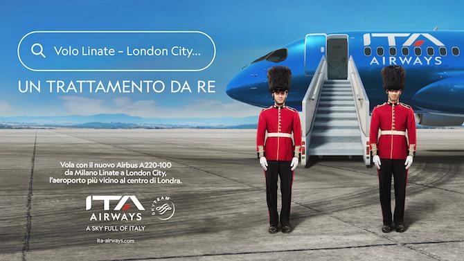 VML racconta la tratta ITA Airways Linate-London City con una campagna dai toni regali e una Domination a Milano Cadorna